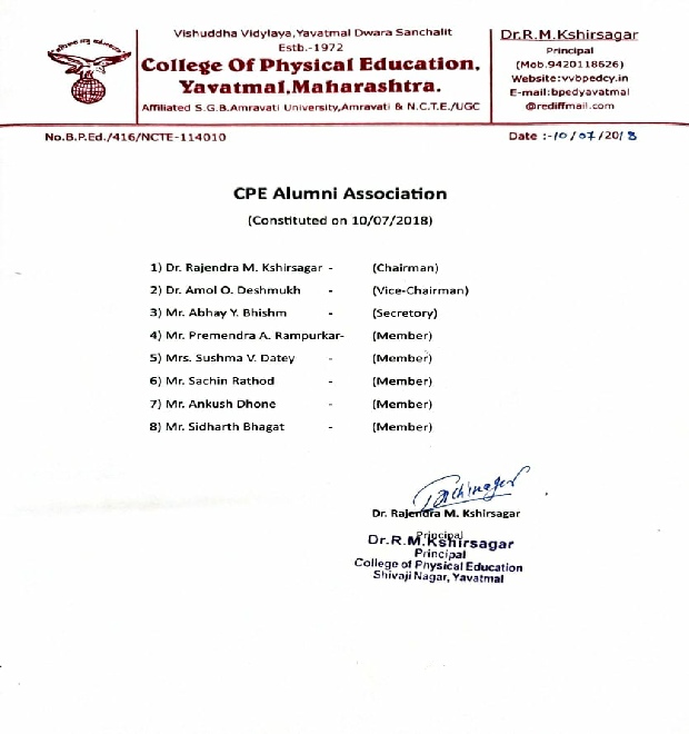 Shri Vishuddha Vidyalaya Yavatmal Dwara Sanchalit College of Physical Education, Yavatmal B.P.Ed. College, Shivaji Nagar, Yavatmal - 445001