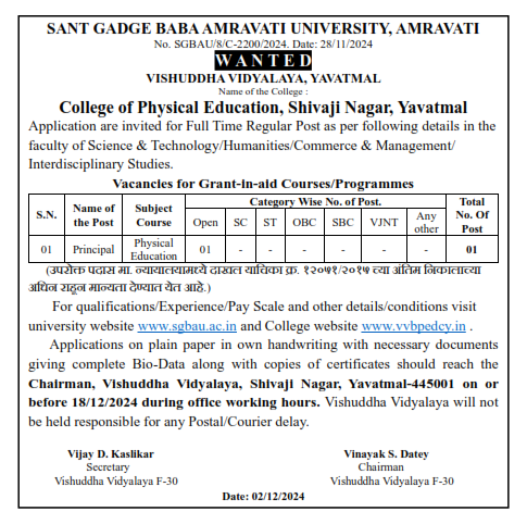 Notice WANTED Back to Home Application are invited for the post of Principal